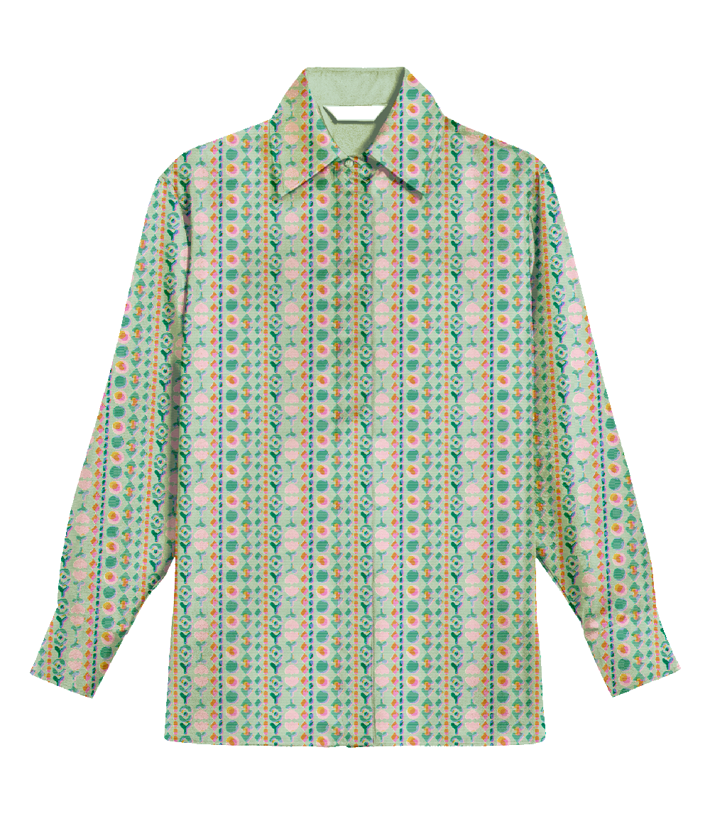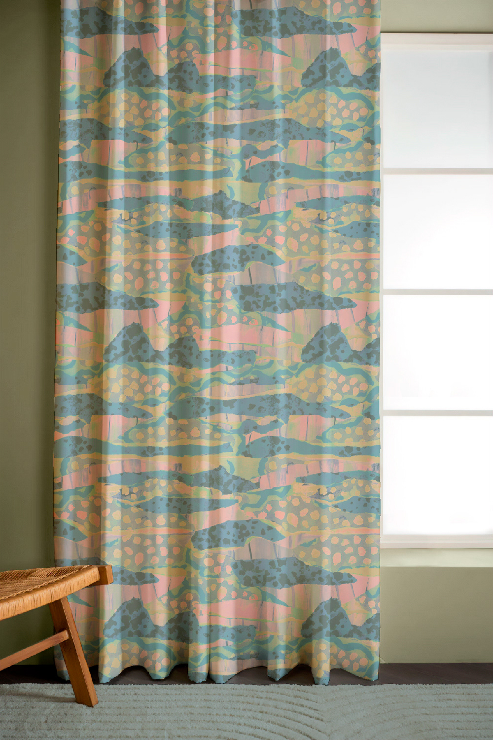 Teeman kulmakiviä ovat abstraktit elementit, väreilevät pinnat ja tekstuurit ja herkulliset karkkivärit, joita on pehmennetty murretuilla väreillä. Kolme neljästä teeman alle tekemästäni kuosista on rakennettu alusta loppuun digitaalisesti.