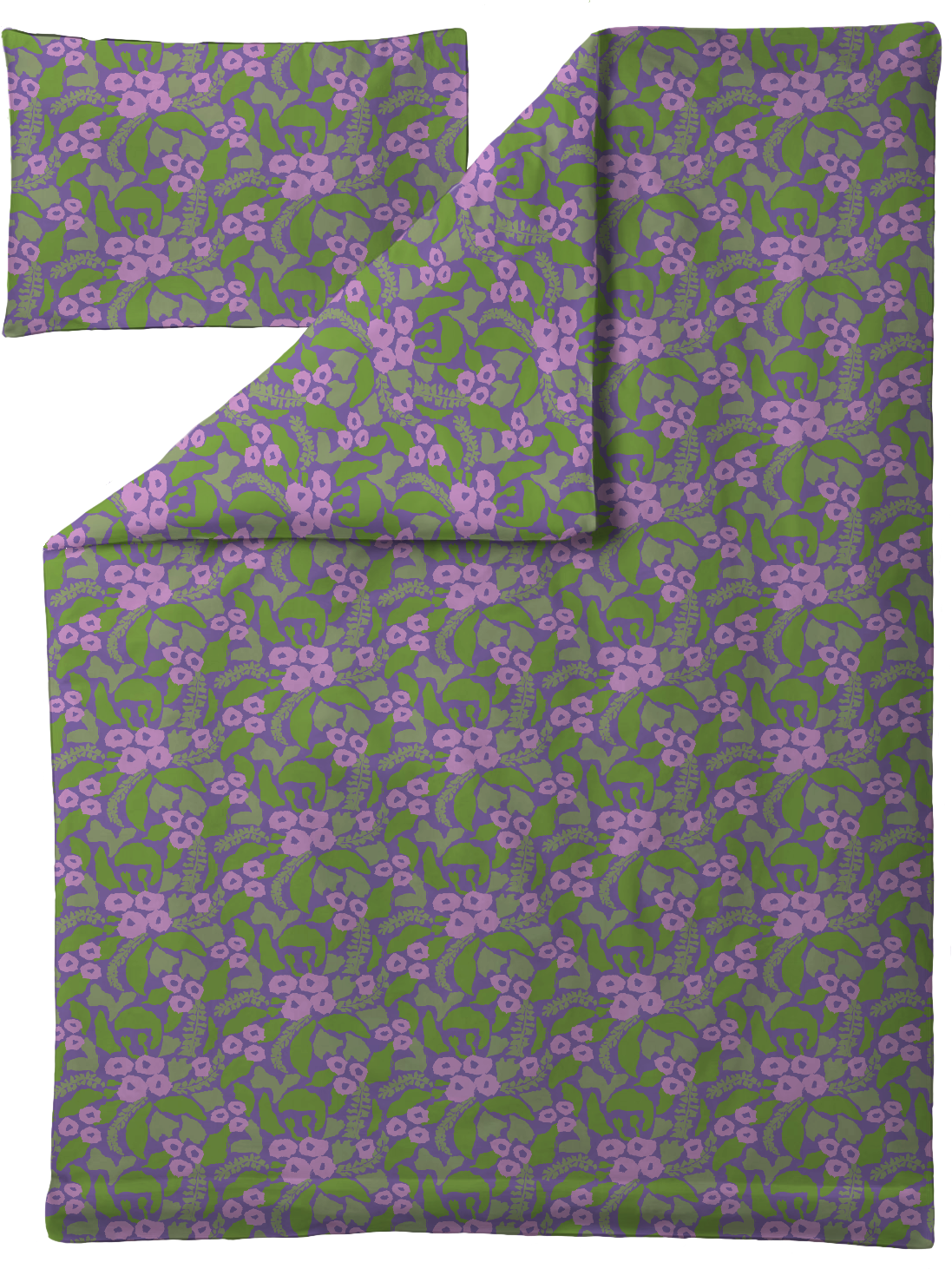 Kasvien salainen maailma on painokangaskurssille suunnittelemani makuuhuonemallisto. Malliston inspiraation lähteenä toimivat Heimtextil-messujen Hypernature-teeman trendivärit ja ultraviolettivalossa kuvatut kasvit. Neliosainen mallisto koostuu kahdesta painokangastuotteesta, kudotusta viltistä sekä räsymatosta.